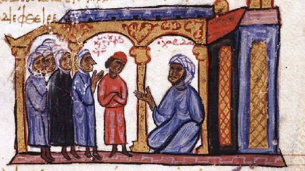 The court of Sayf Al-Dawla, from a history by John Skylitzes. Wikimedia Commons.